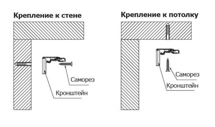 Просверлите отверстия, установите дюбели (при необходимости) и прикрутите кронштейны саморезами. Затем защелкните в кронштейны карниз с жалюзи и коробом, проверьте надежность крепления.