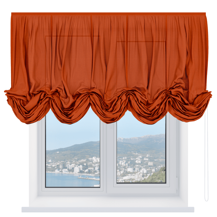 Австрийская штора лён терракотовый, карниз верёвочный