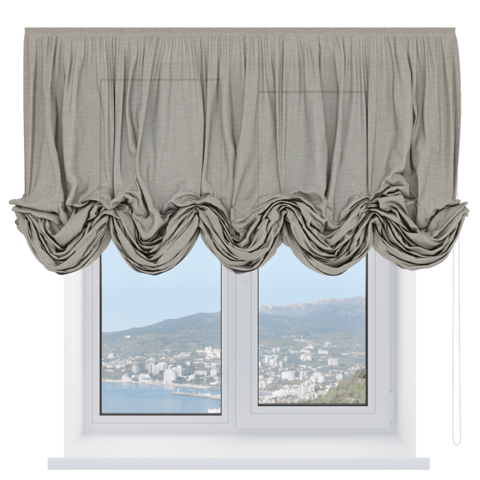 Австрийская штора лён кашемир серый, карниз верёвочный