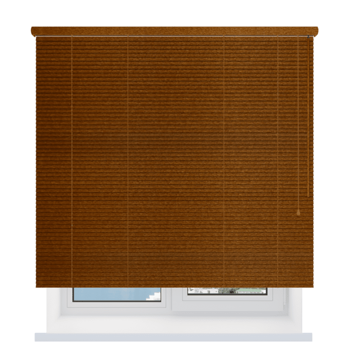 Стандартное управление осуществляется с помощью шнура и трости, которые располагаются с одной стороны. Также осуществляем производство деревянных жалюзи на заказ с электроприводом для управления с пульта или смартфона.