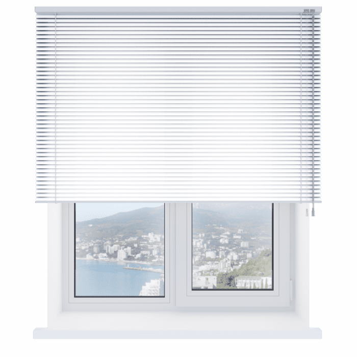 Алюминиевые горизонтальные жалюзи – солнцезащитные устройства, состоящие из поперечных алюминиевых планок (ламелей), которые можно поворачивать для регулировки света и поднимать для полного открытия.